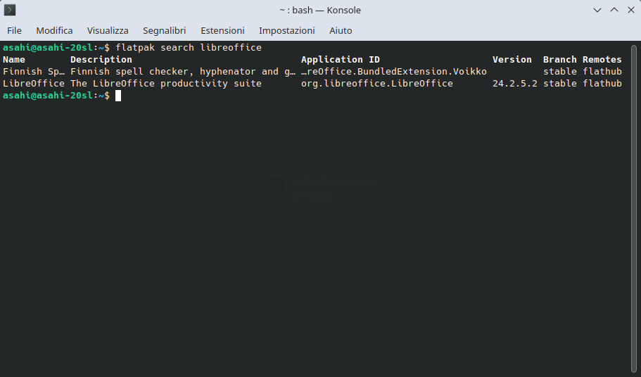Ricerca dei pacchetti Flatpak attraverso il terminale
