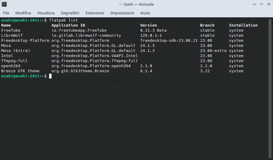 È possibile visualizzare tutte le applicazioni Flatpak installate sul sistema utilizzando il comando seguente: