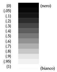 Ogni tonalità di grigio del modello Gray corrisponde ad un numero compreso tra 0 e 1.