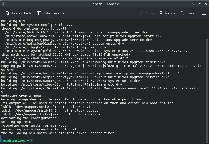 Ora abbiamo configurato correttamente gli aggiornamenti automatici in NixOS: