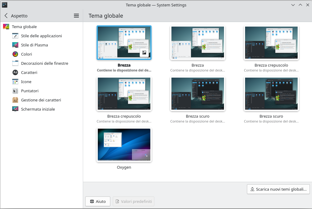 Selezionare il tema "Brezza scuro". Si aprirà la seguente finestra: