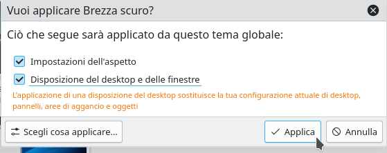Selezionare il pulsante "Applica" per confermare l'applicazione del nuovo tema: