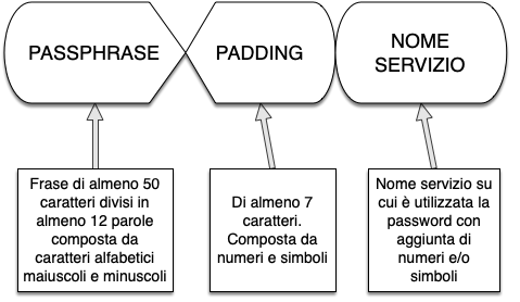 Con uno schema riassumo le parti che comporranno la struttura per generare la nostra password inviolabile: