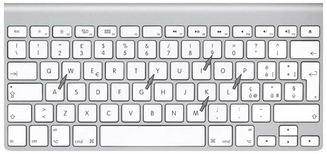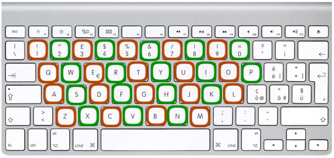 Dividiamo la tastiera in linee diagonali che vanno partendo dal basso da sinistra verso destra come nella figura sottostante:
