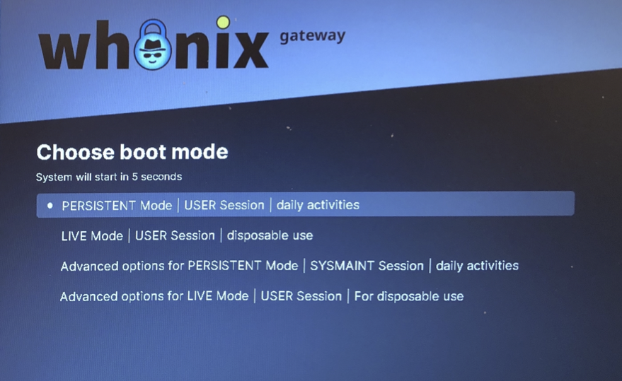 Sia avvierà la "Whonix-Gateway-Xfce":
